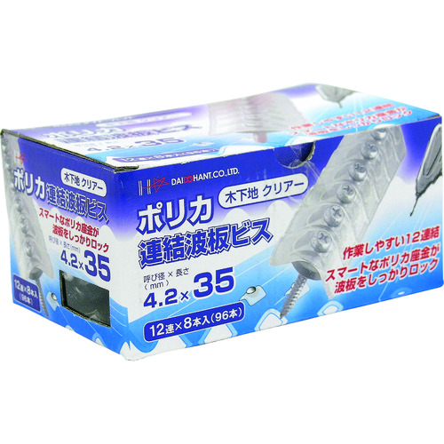 DAIDOHANT ポリカ連結波板ビス 12連×8本(96本入) 4.2×35mm クリアー 00045950