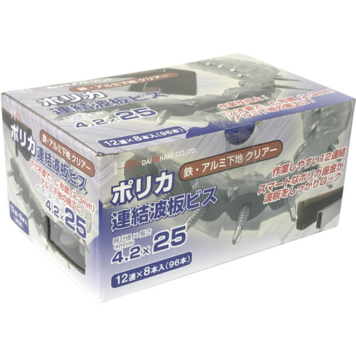 DAIDOHANT ポリカ連結波板ビス 12本×8連(96本入) 4.2×25mm クリアー 鉄下地 00045956