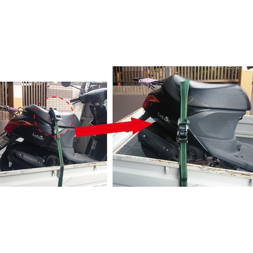 ●固定側ベルトの長さ調整が可能となり、機体を任意の位置に移動可能。荷物を傷めず、手元で操作が可能です。