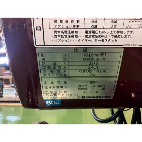 静岡 赤外線オイルヒーター VAL6ミニエフワン 60Hz VAL6-MF1 60HZ