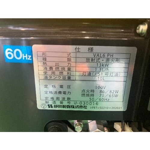 9. 静岡 赤外線オイルヒーター VAL6PH 60Hz VAL6-PH 60HZ