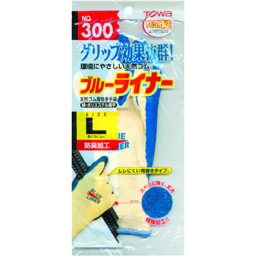 トワロン 天然ゴム背抜き手袋 ブルーライナー L 300-L
