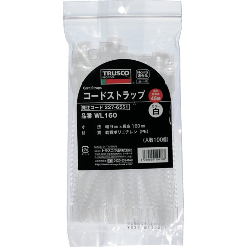 TRUSCO コードストラップ 幅9mmX160mm 最大結束Φ45 100本入 WL-160