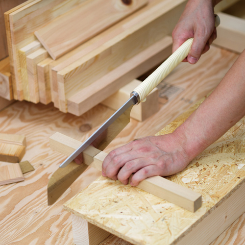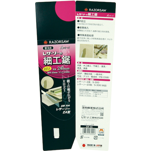 ●細工用鋸。一般木材・合板・集成材・竹細工まであらゆる仕上加工に最適です。刃先の穴あけ加工刃も特長です。