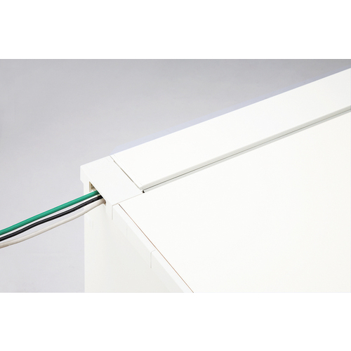 ●配線カバーは取り外すことができるので、デスク間の横配線も簡単に行えます。また、天板サイド部のキャップを内側に折り曲げるだけで横配線がスムーズに行えます。