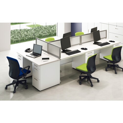 ●オフィスワーカーにとって必要な機能を凝縮しており、充実した配線機能や大容量の収納などオフィスワーカーをサポートするデスクシステムです。