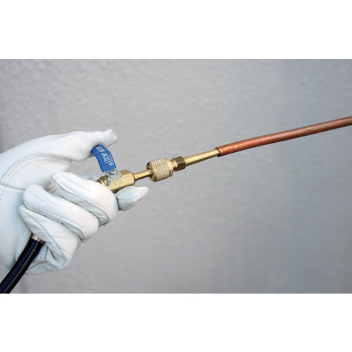 ●ロウ付け作業時、配管内部に窒素を通し、酸化被膜(すす)の発生を防止します。