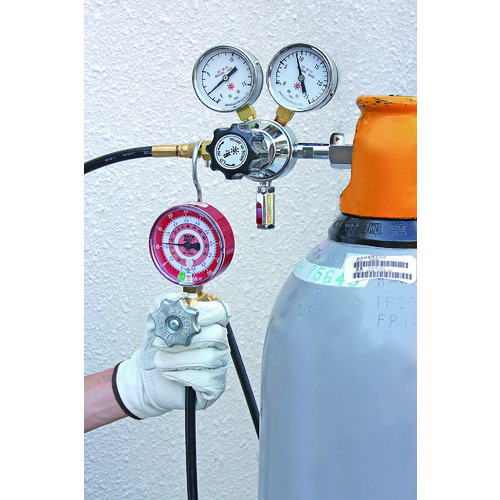●気密試験用調整器、1/4インチチッソ用ホース3m×2本、φ80mmシングルマニホールド、異径アダプタ1/4インチ×5/16インチ、1/4インチニードルバルブ、ケース