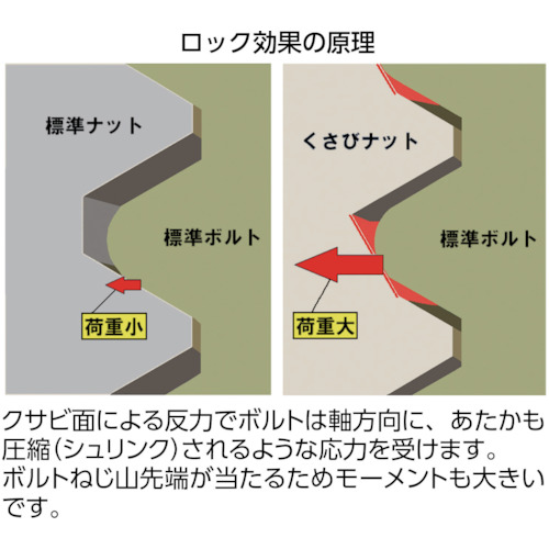 ●非対称ねじ山を利用した強力なゆるみ止め効果を発揮します。