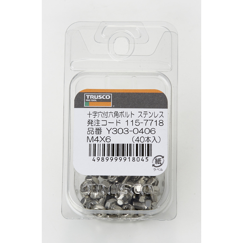 9. TRUSCO 十字穴付六角アプセットボルト ステンレス M4×6 40本入  Y303-0406
