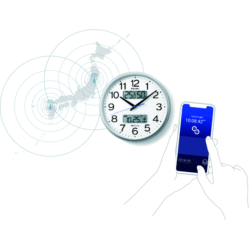 ●標準電波またはスマホアプリから時刻を受信できるハイブリッド電波時計です。