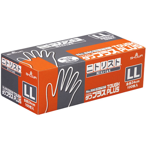 SHOWA ニトリルゴム使い捨て手袋 No886ニトリスト・タフプラス100枚入 LLサイズ NO886-LL