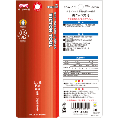 Victor 斜ニッパ(成型カバ-付) 全長131mm 322AE-125