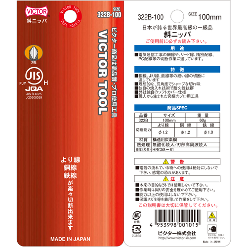 9. Victor 斜ニッパ(ソフトカバ-付) 全長110mm 322B-100