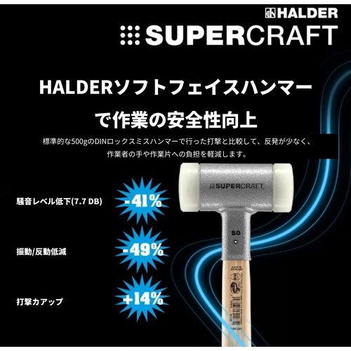 HALDER SUPERCRAFTショックレス 無反動ハンマー スティール製ハンドル付ナイロン(白) 頭径40mm、長さ305mm 3377.040