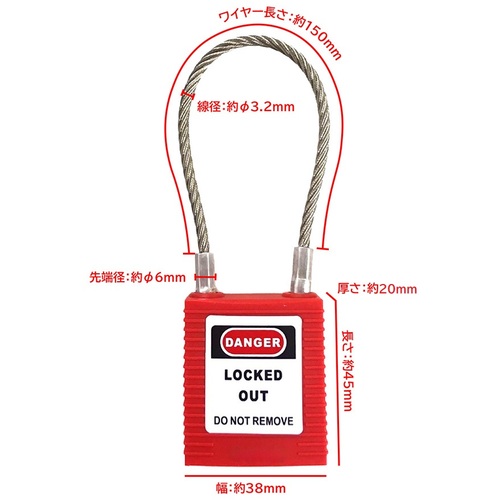 セーフラン ロックアウト用ケーブルパドロック 赤 14685-1
