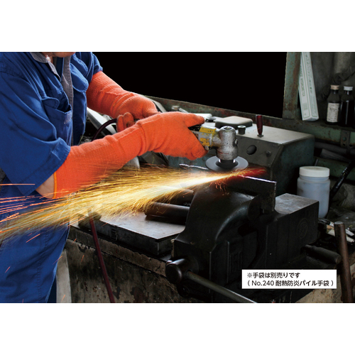 ●耐熱防炎難燃繊維を使用していますので、炎や熱にも着火せず、燃え上がらず、溶融して肌に付着することもありません。