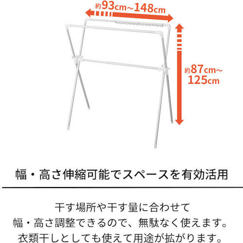 ●布団を掛けやすく、地面に着きにくいしっかり干せる高さ設定です。