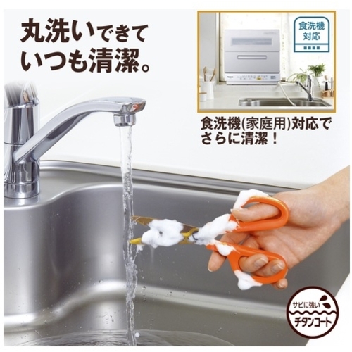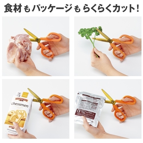 ●パッケージや食材もしっかり切れて、汚れやサビに強く、まるごと洗えていつも清潔なはさみです。