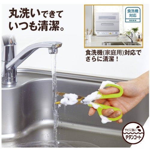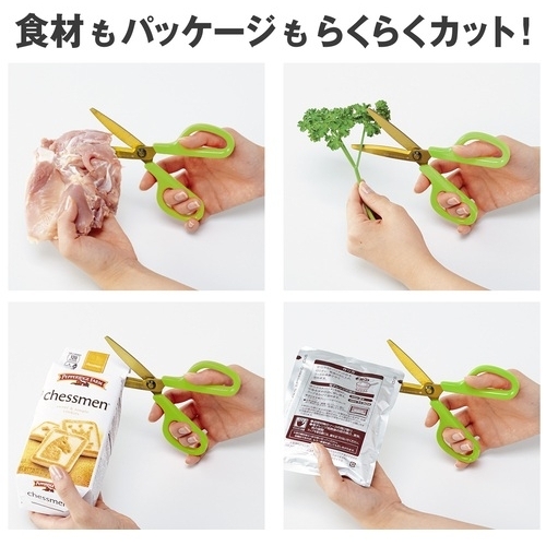 ●パッケージや食材もしっかり切れて、汚れやサビに強く、まるごと洗えていつも清潔なはさみです。
