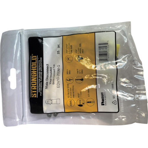 ストロングホールド ビニール絶縁被覆付圧着端子 オス型 電線サイズ:AWG12~10/3.5~5.5sq 250タブ用 25個入り EDV10-250M-Q EDV10-250M-Q
