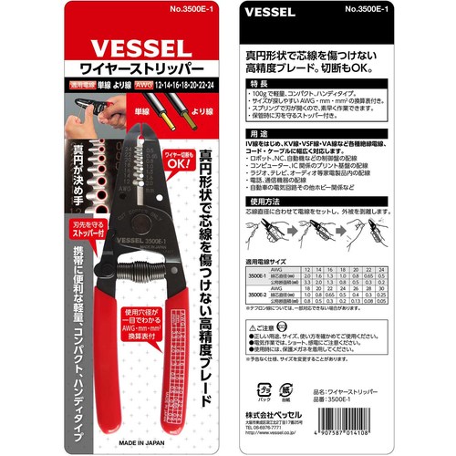 VESSEL ワイヤーストリッパー No.3500E-1(単線・より線用) 3500E-1