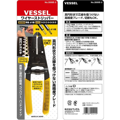 VESSEL ワイヤーストリッパー No.3500E-2(単線・より線用) 3500E-2
