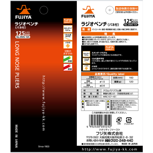 フジ矢 バネ付ラジオペンチ 125mm 350S-125