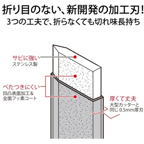 ●新開発の長持ち加工刃で、折らずに長く快適に使える刃を折らないカッターです。