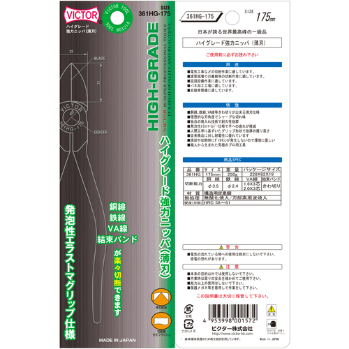 Victor ハイグレード 強力ニッパエラストマG薄刃 361HG-175