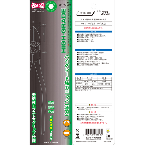 Victor ハイグレード 強力ニッパ薄刃エラストマG 361HG-200
