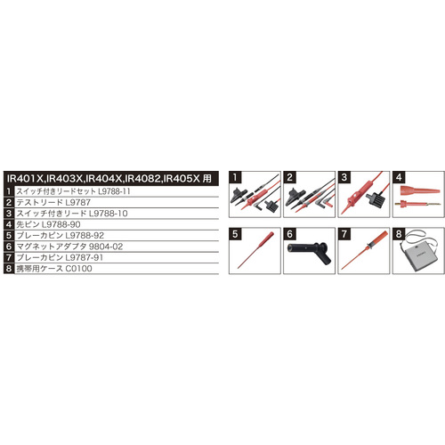 ●スイッチ付リードセット(L9788-11)×1●携帯用ケース(C0100)×1●単3形アルカリ乾電池(LR06)×4●取扱説明書×1