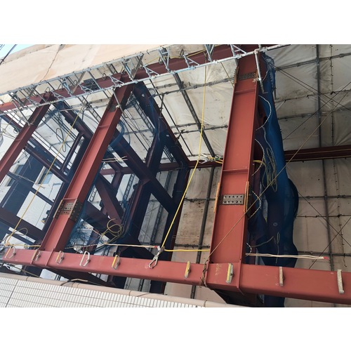●両端大口径(50mm)フック付のニューテトロンロープ16mmΦ(3ツ打ち)仕様の水平移動用親綱です。