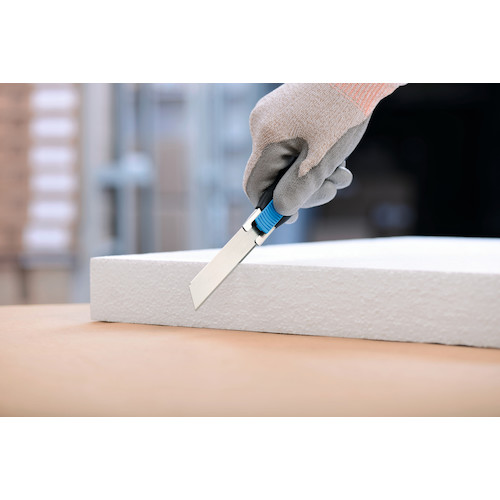 ●刃が長く、しなるため厚手の材料カットや横から水平に接触面に押し当てて使用できます。