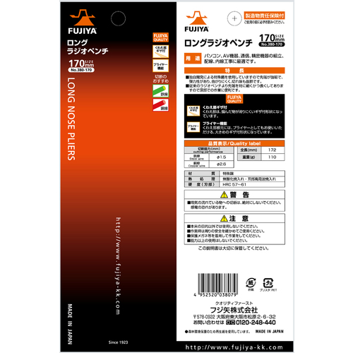 フジ矢 ロングラジオペンチ 170mm 380-170
