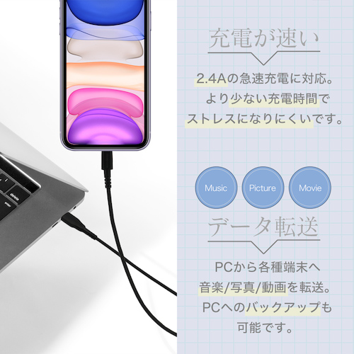 ●規格:USB2.0 規格準拠 最大2.4A充電対応。