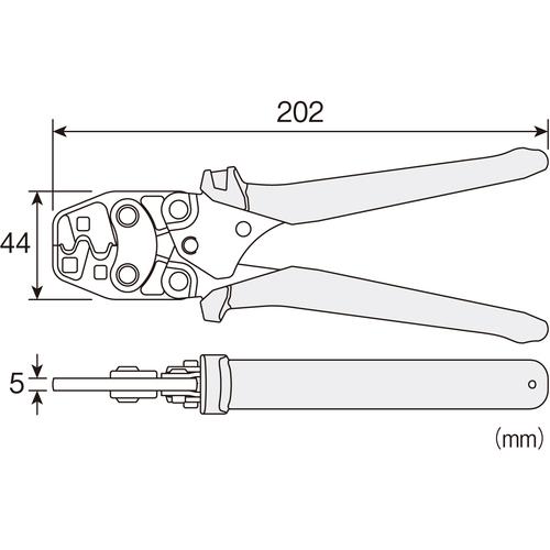 ●リングスリーブの圧着サイズ「小(1.6×2を含む)」、「中」に対応したコンパクトな圧着工具です。
