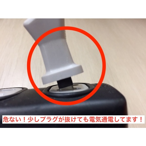 ●プラグキャプに変形、変色(白変、黄変地)が発生した場合、プラグ、コンセントに異常がある可能性があります。直ちに各所を点検して異常がなければプラグキャップを新しいものに取り換えてその後はこまめに注視点検してください。