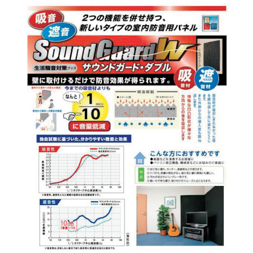●音のする方向の壁などに取り付けるだけで防音効果が得られます。