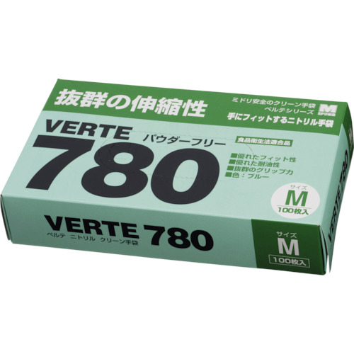 ミドリ安全 ディスポタイプニトリル製ソフト手袋 Mサイズ (100枚入) VERTE-780-N-M