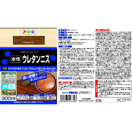 9. アサヒペン 水性ウレタンニス 300ML つや消しクリヤ 447647
