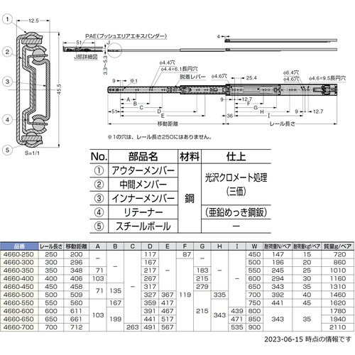 SUGATSUNE (190021275)4660-250スライドレール 4660-250