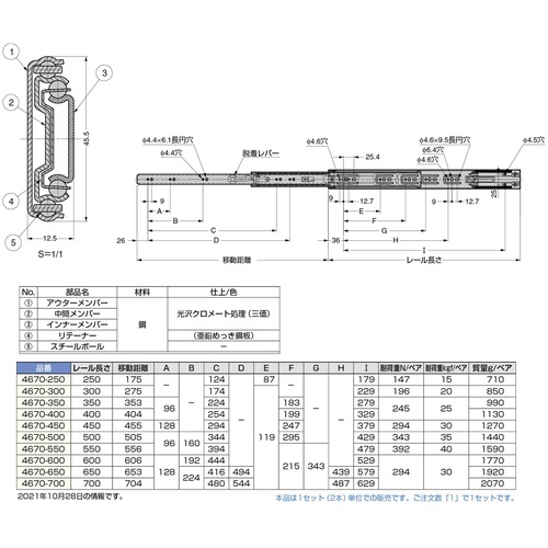 SUGATSUNE (190021267)4670-350スライドレール 4670-350