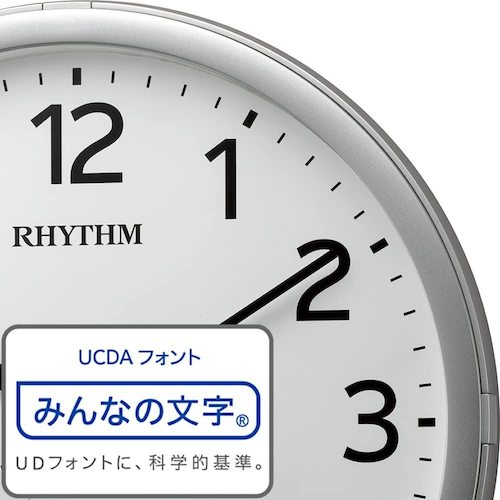 9. RHYTHM 電波 壁掛け時計 最大24回/日プログラムチャイム カレンダー付き シルバー φ350x55 4FNA01SR19