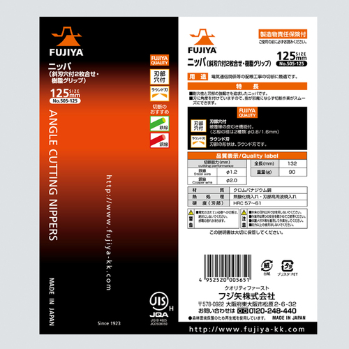 9. フジ矢 ニッパ(斜刃穴付2枚合わせ) 125mm 505-125