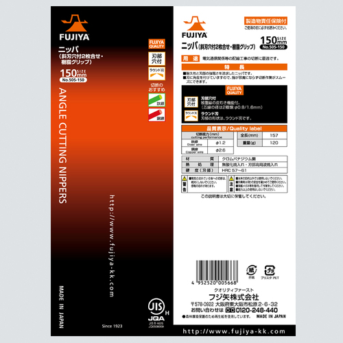 フジ矢 ニッパ 斜刃穴付二枚合わせ 505-150