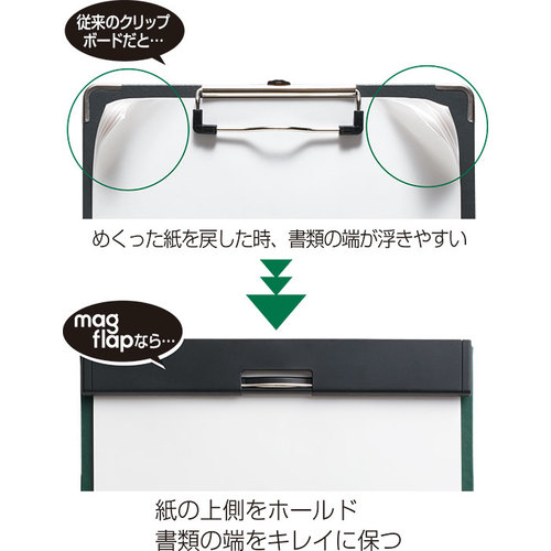 ●背面フラップにより、紙をめくった状態で固定することが可能です。
