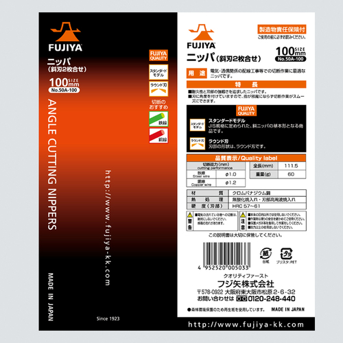 フジ矢 ニッパ斜刃2枚合わせ 50A-100