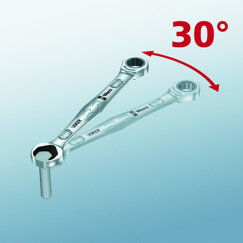 ●コンビネーションラチェットレンチ「JOKER」のヘッド部の両端がサイズ違いのオープンレンチになった仕様です。