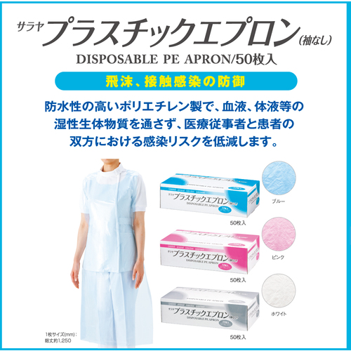 サラヤ プラスチックエプロン袖なしブルー (50枚入) 51063
